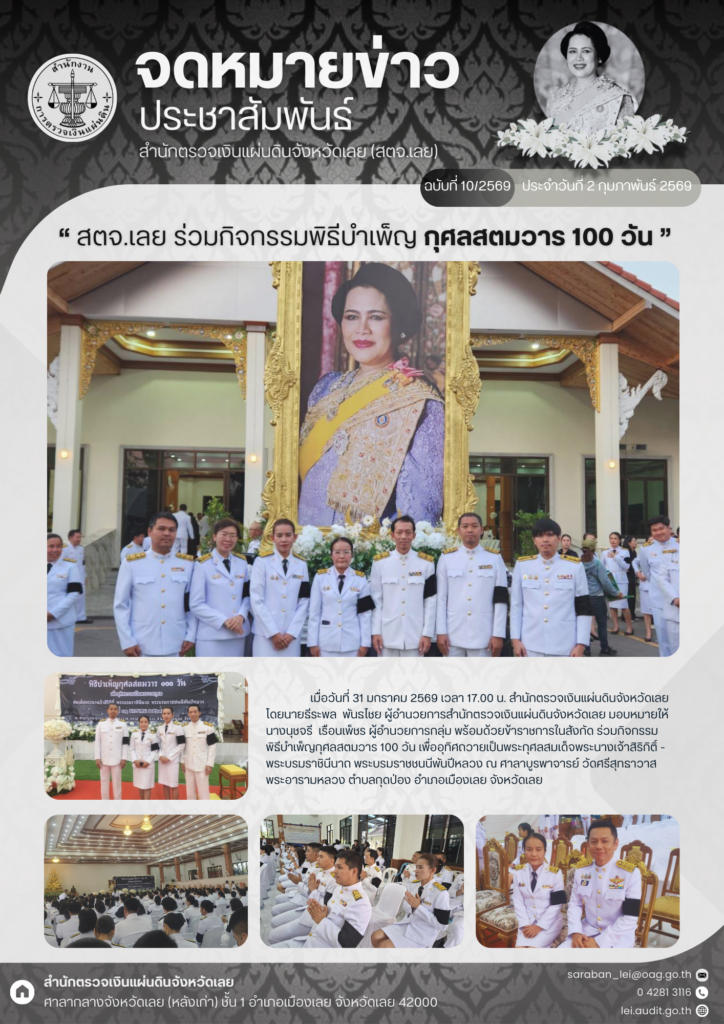 สตจ.เลย เข้าร่วมพิธีบำเพ็ญ 100 วัน เพื่ออุทิศถวายเป็นพระราชกุศล แด่สมเด็จพระนางเจ้าสิริกิติ์ พระบรมราชินีนาถ พระบรมราชชนนีพันปีหลวงUncategorized, ข่าวที่น่าสนใจ, ข่าวประชาสัมพันธ์, งานราชพิธี/รัฐพิธี, ภาพกิจกรรมกุมภาพันธ์ 2, 2026กุมภาพันธ์ 2, 2026 Post Views: 61